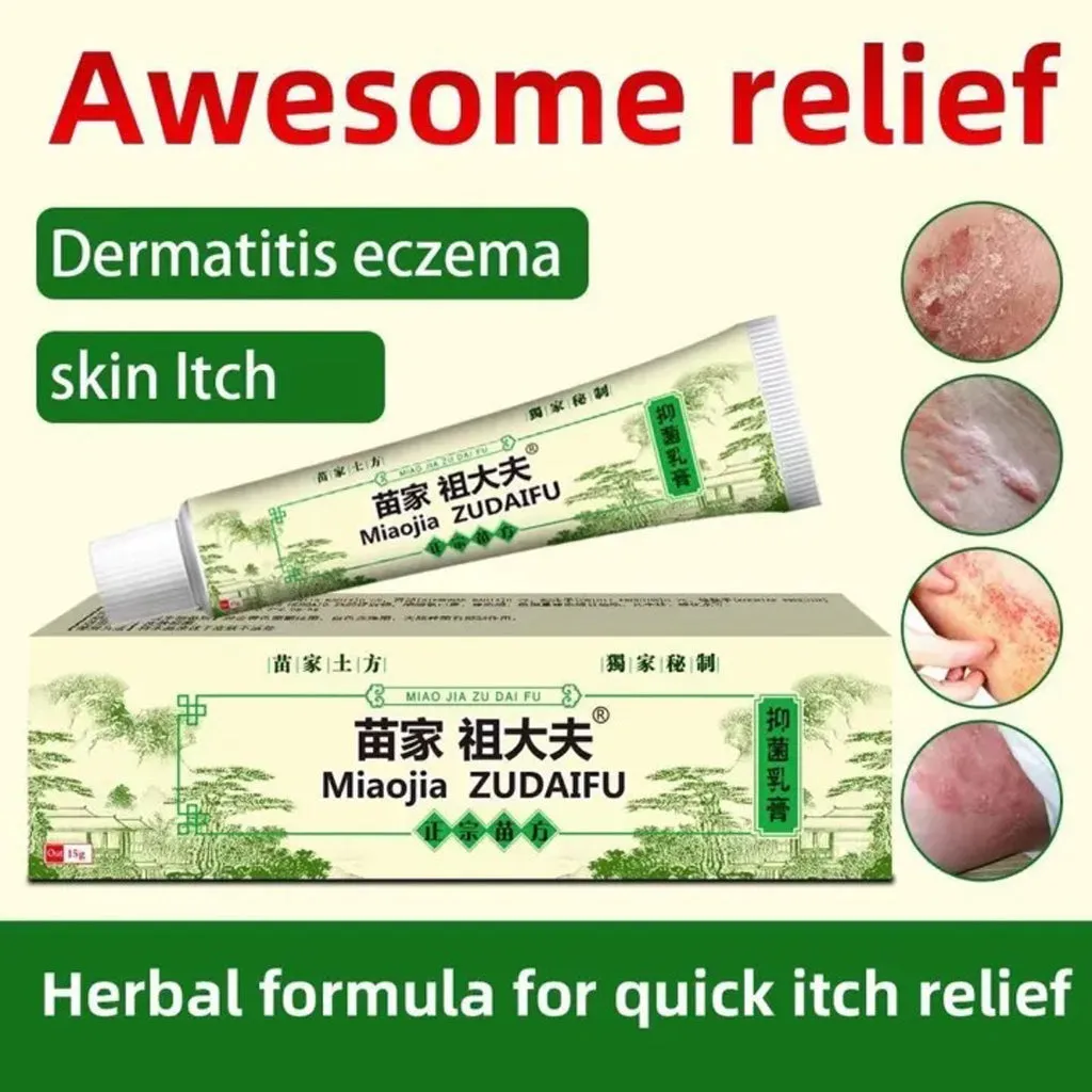 Miaojia Zudaifu Antibacterial Cream is a topical herbal remedy formulated to help relieve a wide range of skin concerns. Marketed as an “Authentic Miao Formula,” it combines traditional herbal ingredients known for their antibacterial and soothing properties. This cream is commonly used for conditions such as eczema, psoriasis, dermatitis, rashes, acne, and skin itchiness.