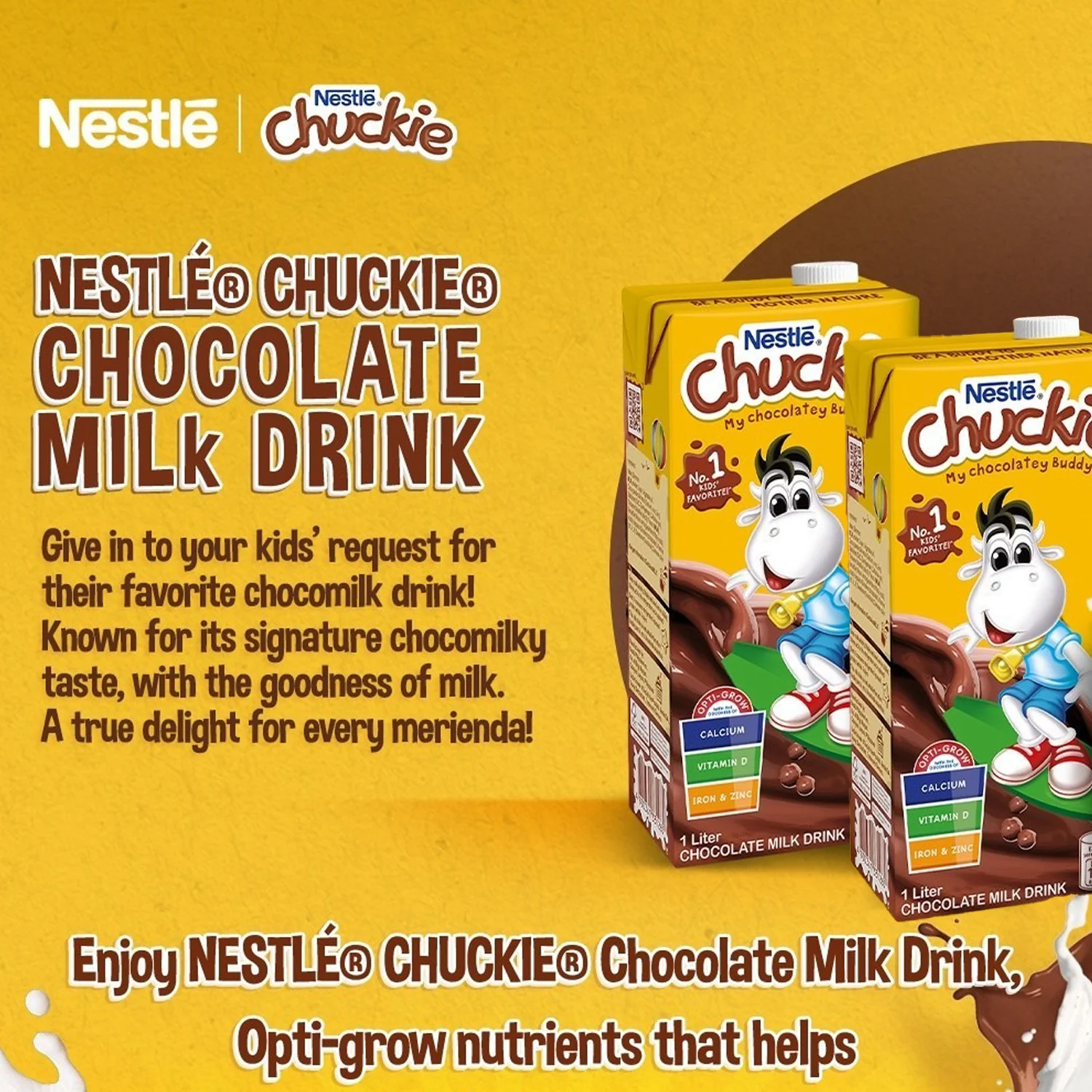 Enjoy the rich, chocolatey goodness of Nestlé Chuckie, the No. 1 kid’s favorite chocolate milk drink in the Philippines. Packed in a convenient 1-liter tetra pack, this delicious beverage is perfect for sharing at home or keeping in the fridge for a quick, satisfying treat any time of day.