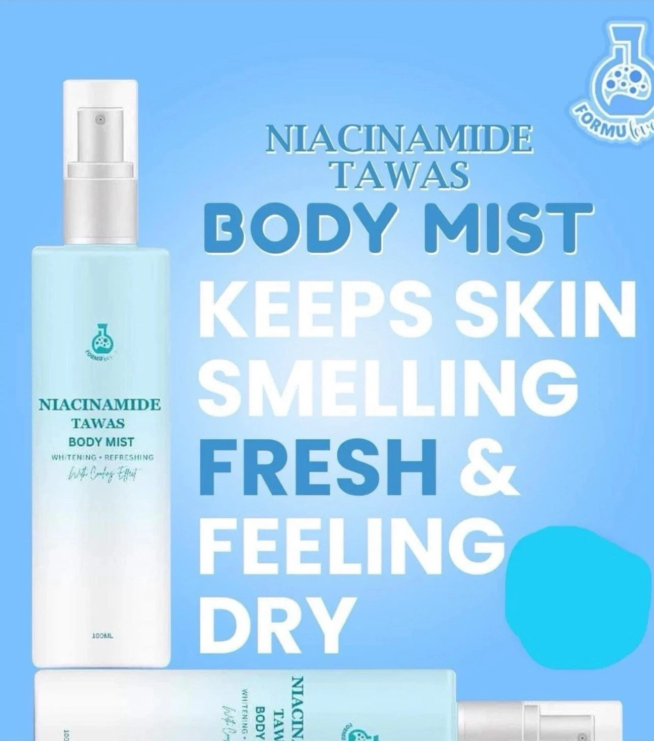 Niacinamide Tawas Body Deo Mist Spray is a refreshing body mist that helps control body odor and keep skin fresh throughout the day. Enriched with Niacinamide and Tawas (alum), it works to reduce sweat and maintain skin hygiene while providing a light, pleasant fragrance. Suitable for daily use on all skin types.
