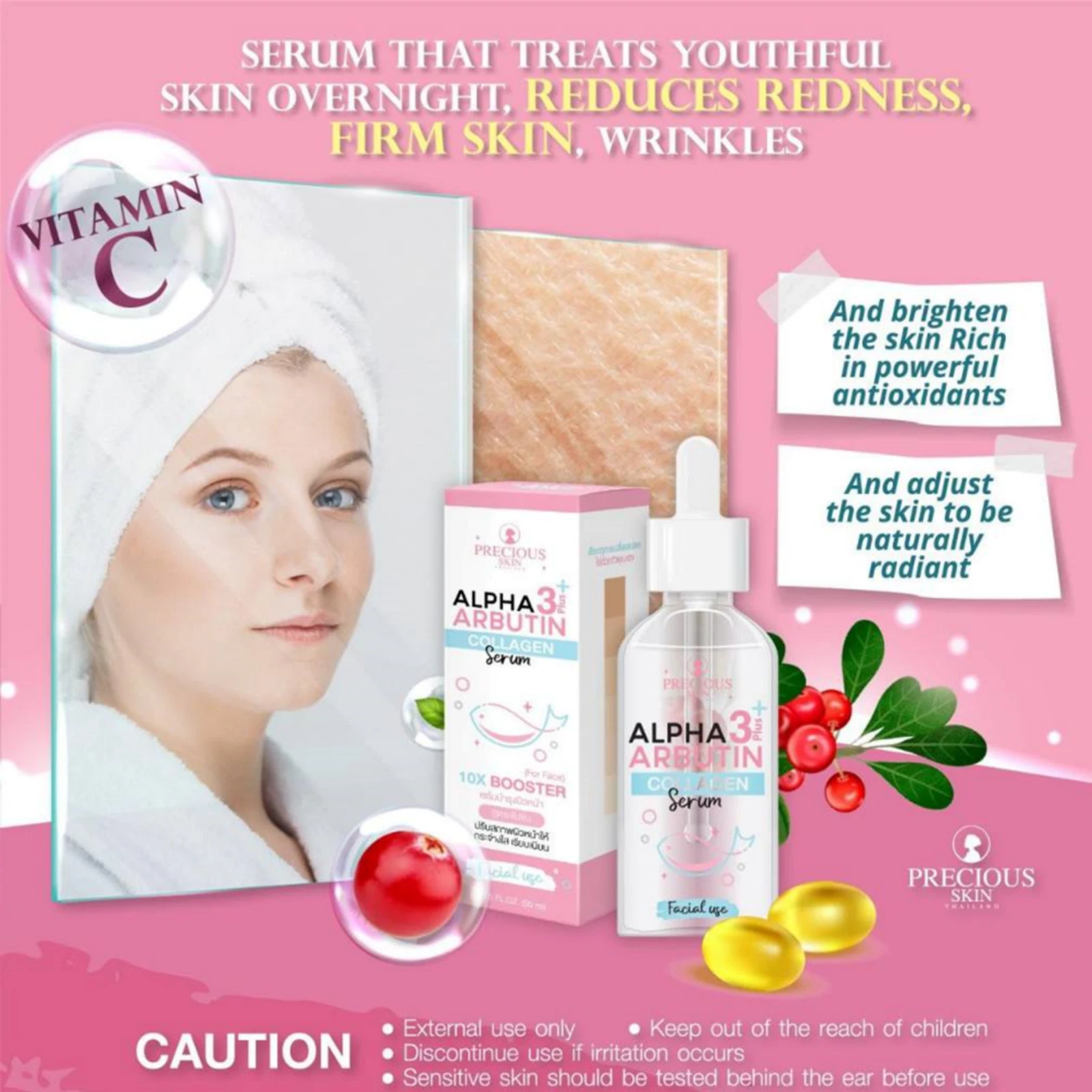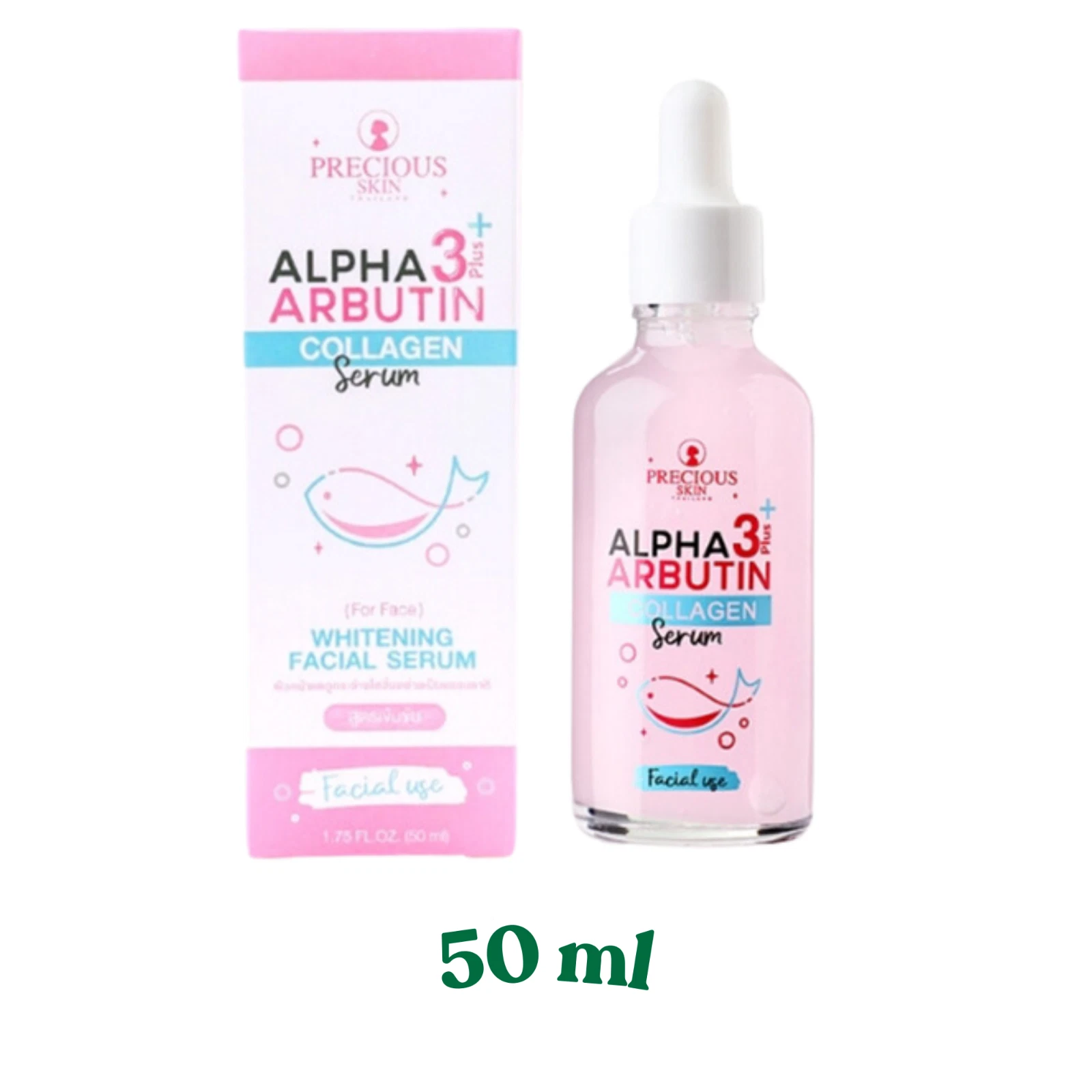 Precious Skin Alpha ABT 3 Plus Collagen Serum is a brightening facial serum formulated to help improve skin tone, boost hydration, and enhance skin elasticity. Enriched with Alpha ABT 3 Plus and collagen, it helps reduce the appearance of dark spots, acne marks, and dullness while promoting smoother, firmer, and more radiant skin. Its lightweight formula absorbs quickly, making it suitable for daily use.