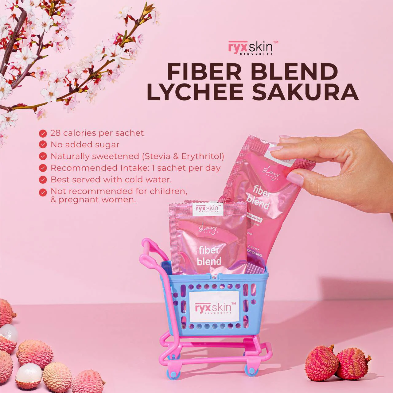 Ryx Skin Fiber Blend Lychee Sakura is a refreshing, premium detox drink designed to improve digestion, support daily cleansing, and promote a lighter, healthier body. Made with high-quality soluble fiber, Lychee extract, and Sakura essence, this blend helps flush out toxins, minimize bloating, regulate bowel movement, and support healthy weight management.