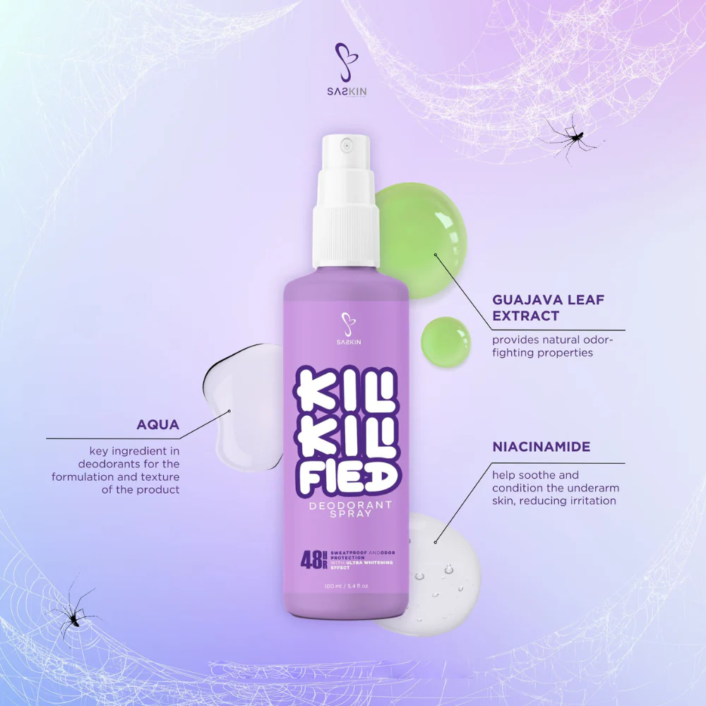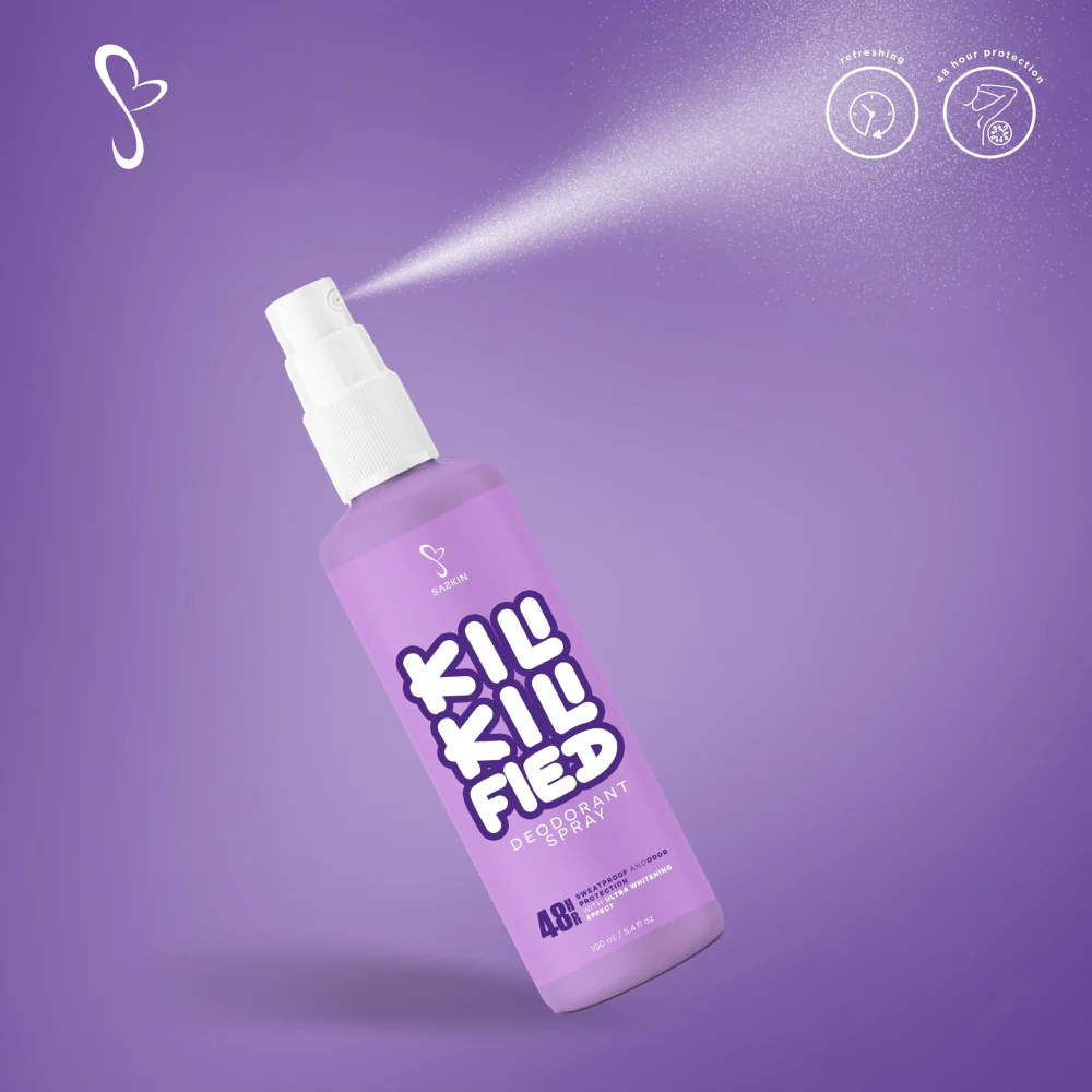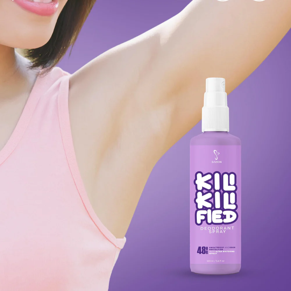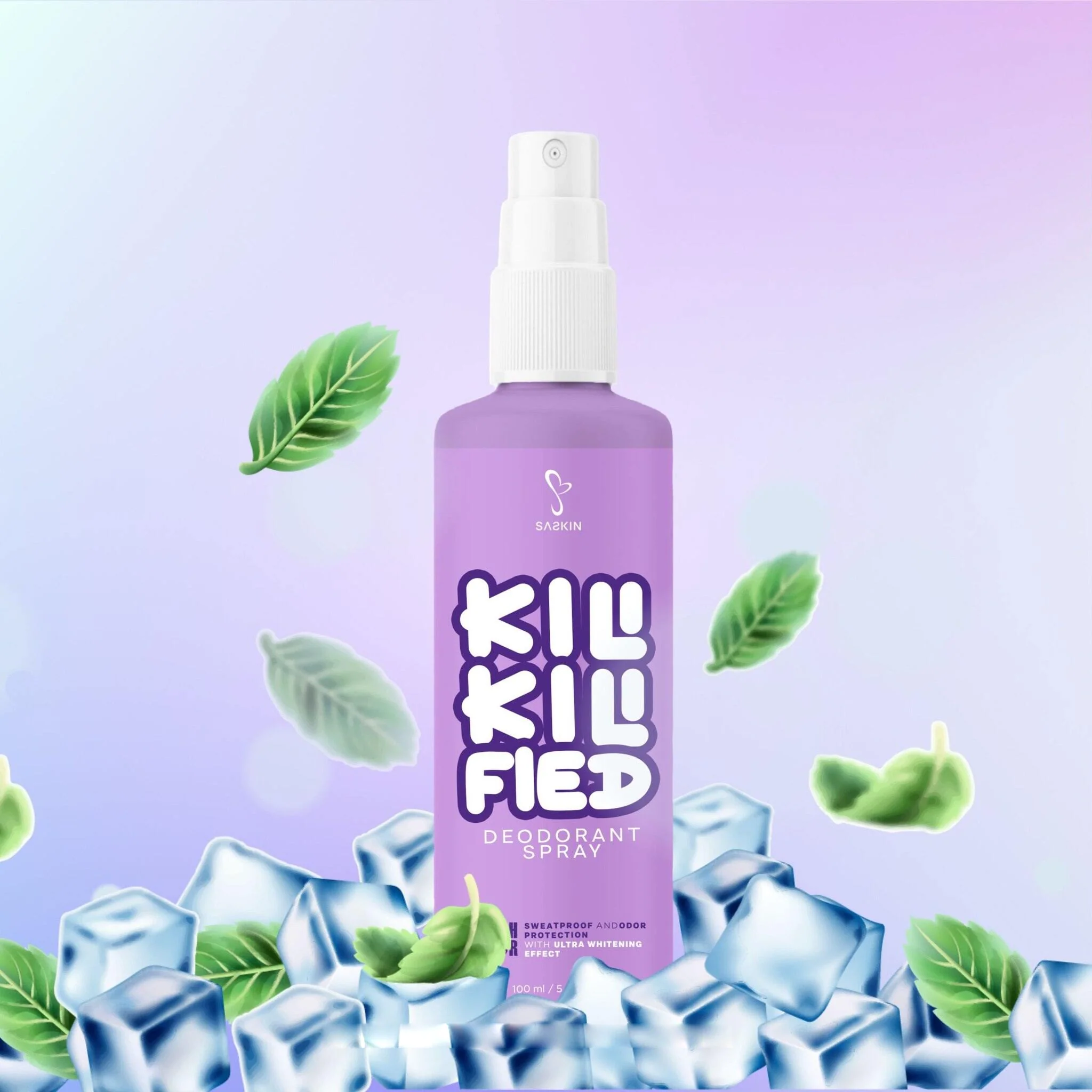 Saskin Kili Kili Fied Deodorant Spray is specially formulated to keep your underarms fresh, dry, and odor-free all day. This lightweight deodorant helps control sweat while neutralizing odor-causing bacteria, giving long-lasting freshness without irritation.