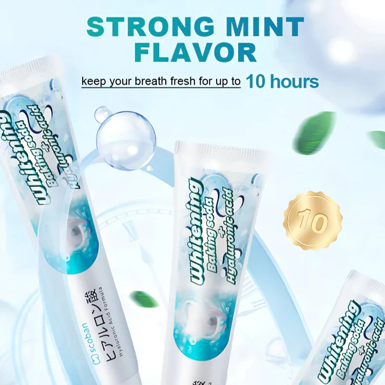 Scoban Teeth Whitening Toothpaste is specially formulated with baking soda and gentle whitening agents to effectively remove stains, brighten teeth, and freshen breath. Its deep-cleaning formula helps fight plaque, reduce discoloration, and promote a healthier, whiter smile with continuous use.
