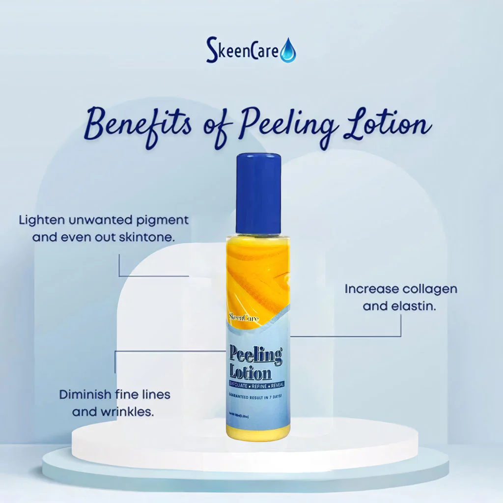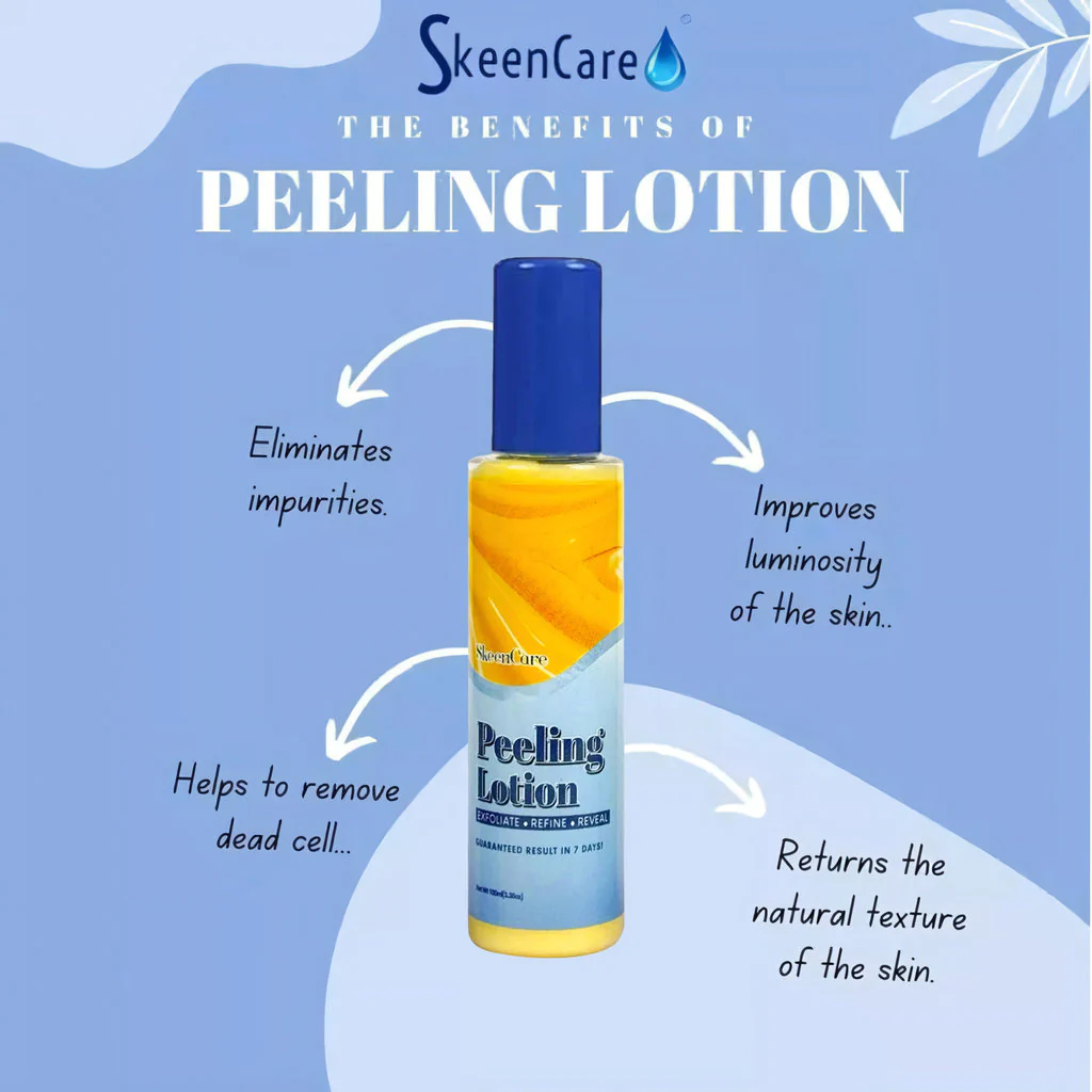 SKeencare Peeling Lotion is a powerful exfoliating formula designed to renew, brighten, and smooth the skin by gently peeling away dead skin cells. It helps reduce dark spots, hyperpigmentation, chicken skin (KP), discoloration, and rough patches on the body, revealing a more radiant and even skin tone.