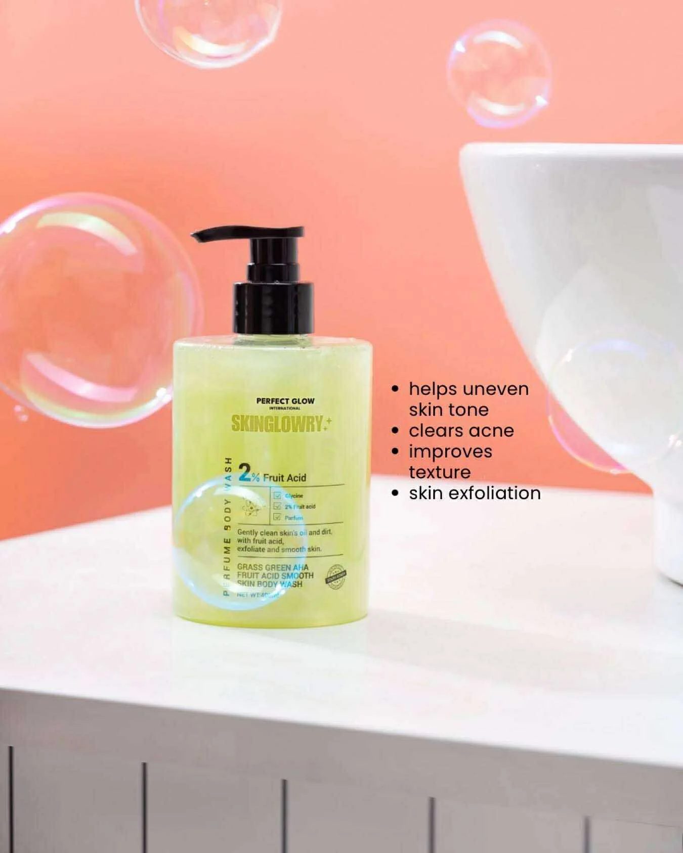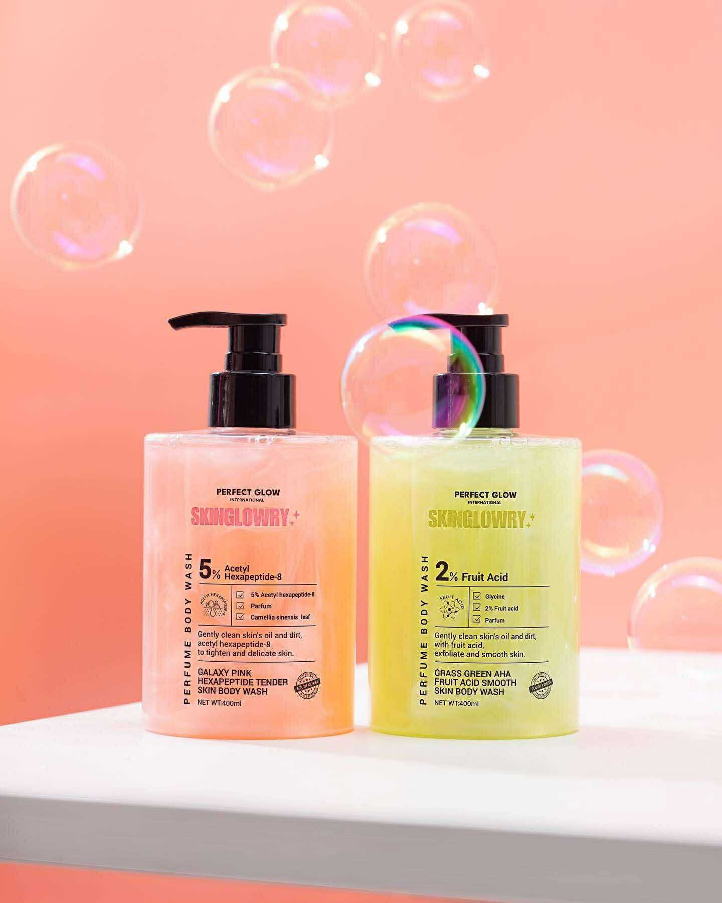 Skin Glowry Perfect Glow Body Wash (Green) is a refreshing, brightening, and deeply nourishing body cleanser formulated to leave your skin smooth, radiant, and glowing after every bath.