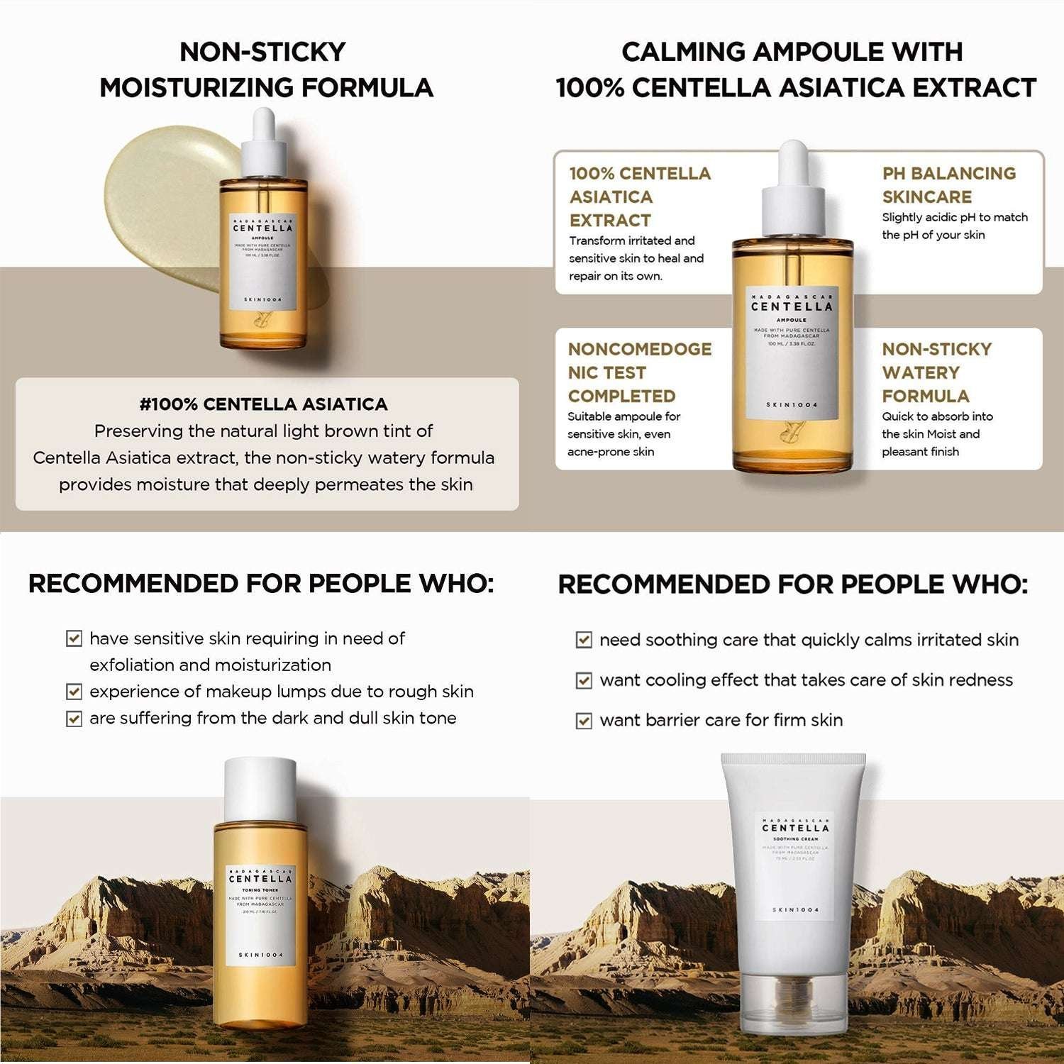 – Contains Centella Ampoule that soothes and balances skin