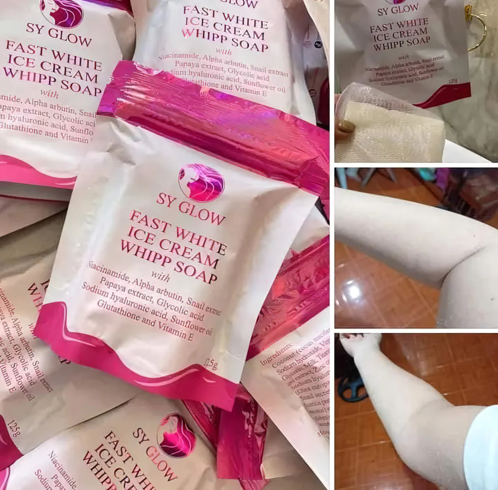 SY Glow Fast White Ice Cream Whipp Soap β 125g is a luxurious skin-whitening soap with a unique ice cream whipped texture. Enriched with brightening and moisturizing ingredients, it helps lighten dark spots, even skin tone, and enhance your skinβs natural radiance.