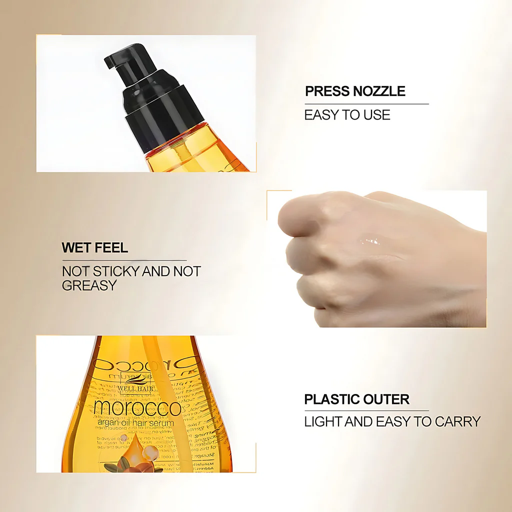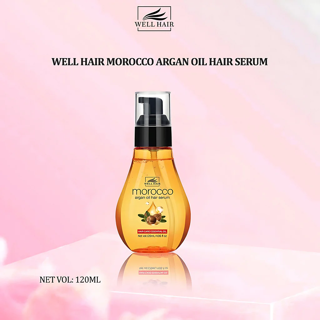 Well Hair Morocco Argan Oil Serum 120ml is a premium hair treatment serum enriched with Moroccan Argan Oil to help nourish, repair, and protect damaged hair. It helps control frizz, adds shine, and improves hair softness without leaving a greasy feel. Ideal for daily use on all hair types, especially dry and chemically treated hair.