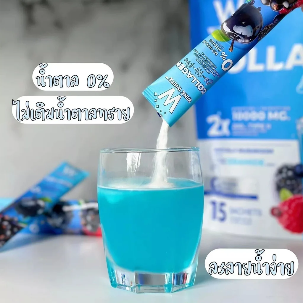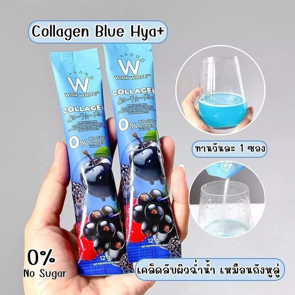 Wink White Collagen Blue HYA Plus β Advanced Collagen Drink for Skin, Joints & Total Beauty – 15 Sachets x 12g
